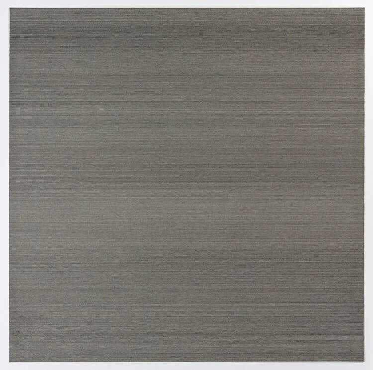 René Magritte’s painting ‘The Lovers’ depicts two veiled heads leaning toward each other, almost touching. Fielden’s drawing is the veil between the lovers. It is the intimate distance between two people – a space that is at once subatomic and infinite.